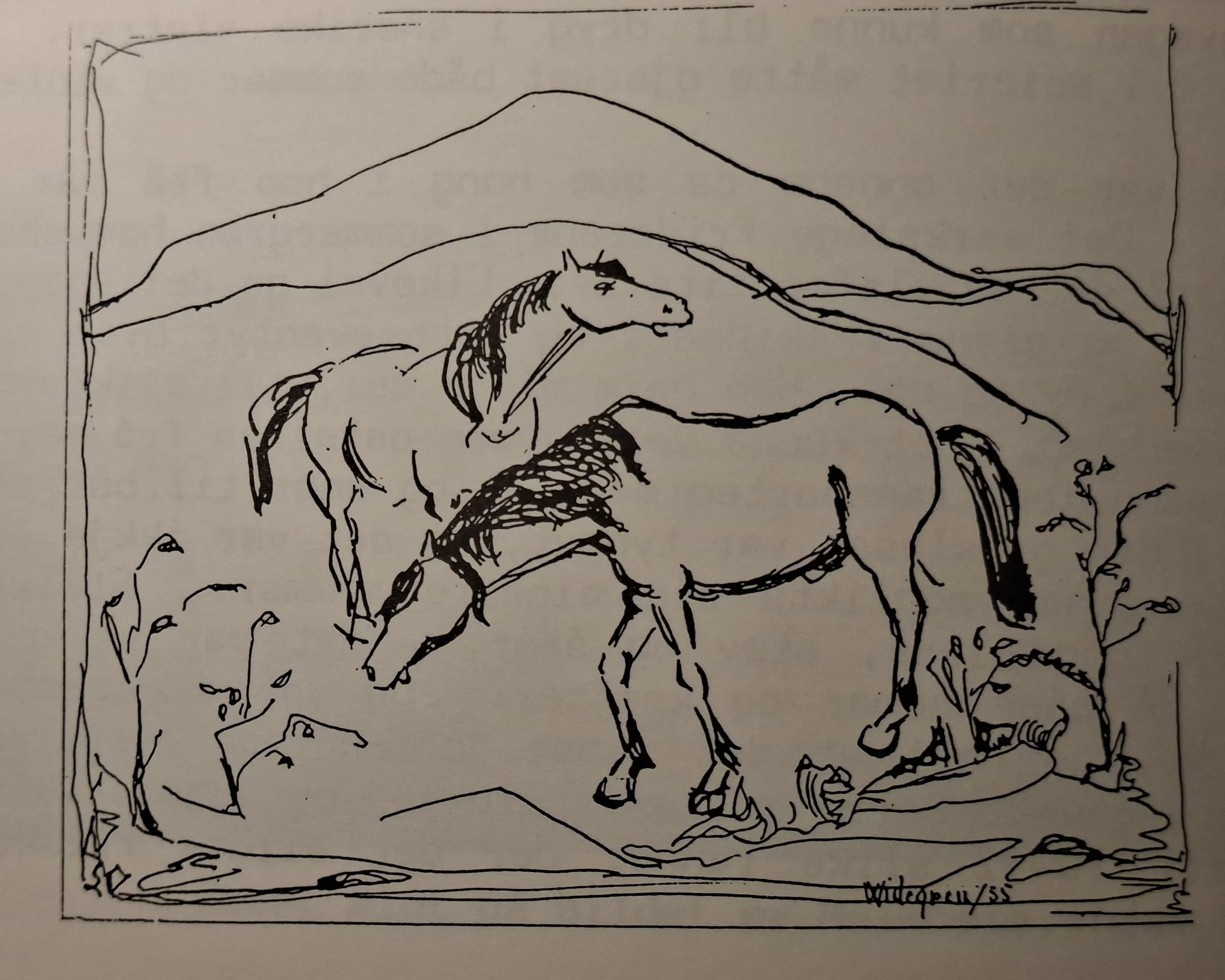 Viktor Widegren sin kunst er og har vært å finne i både aviser, blader og tidsskrift etc. gjennom årenes løp. Denne tegningen var å finne i Beitstaden historielags årsskrift for 1988. Viktor laget denne tegningen i 1985, men er det noen som vet noe mer om orginalen, gi oss gjerne et hint.